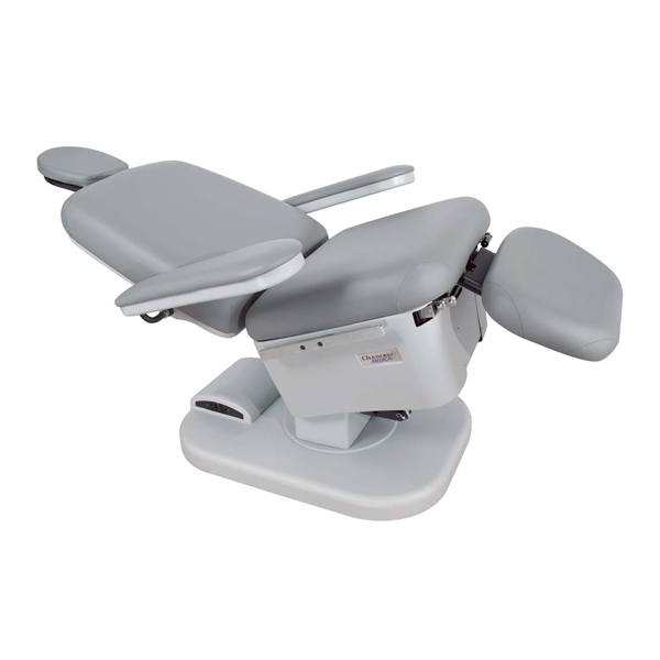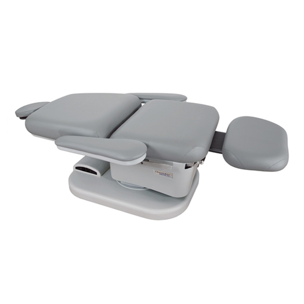 The 300 Series procedure chair offers powered height, 0-80° backrest, 90° leg rest and 15°/5° tilting. Comes with programmable memory positions (hand control), low profile swivel base option and small footprint with great ergonomics. Has a bariatric patient capacity of 550 lbs.