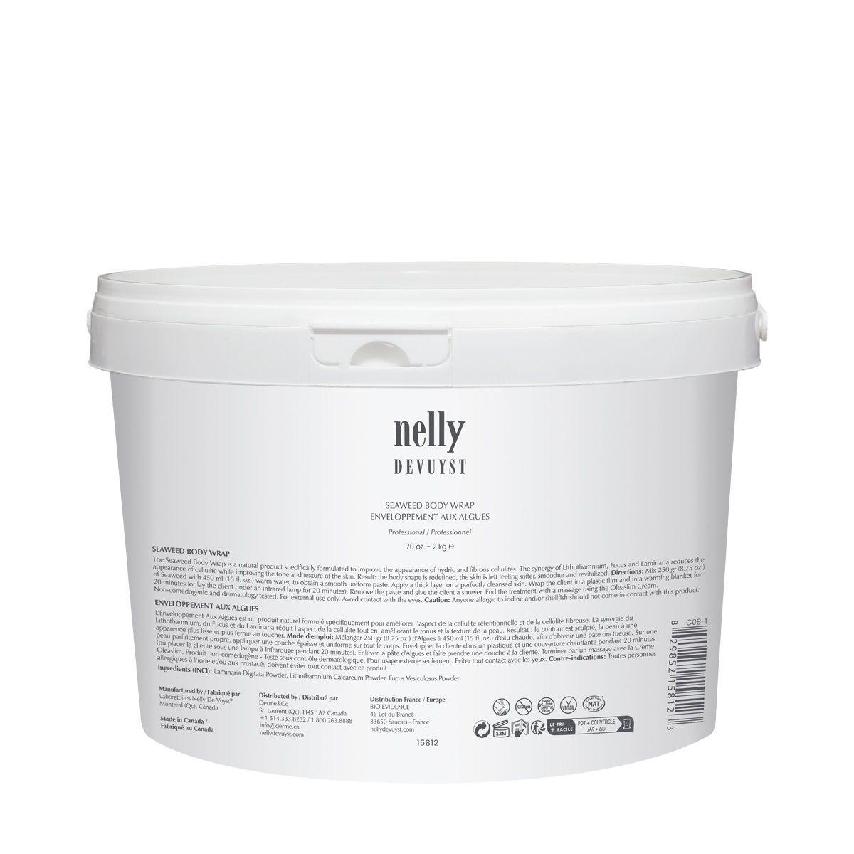 The Nelly De Vuyst® Seaweed Body Wrap is a concentrated powder that combines 3 different freeze-dried algae extracts; Lithothamnium, Laminaria and Fucus. This remineralizing blend, detoxifies and firms the skin. Recommended in a weekly series for 10-12 sessions.